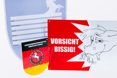 Wir führen Aufmerksamkeit „im Schilde“: Wir gestalten Ihre Infotafeln, Leitsysteme und Schilder auffällig. In kleinen und großen Auflagen für den Innen- und Außenbereich.